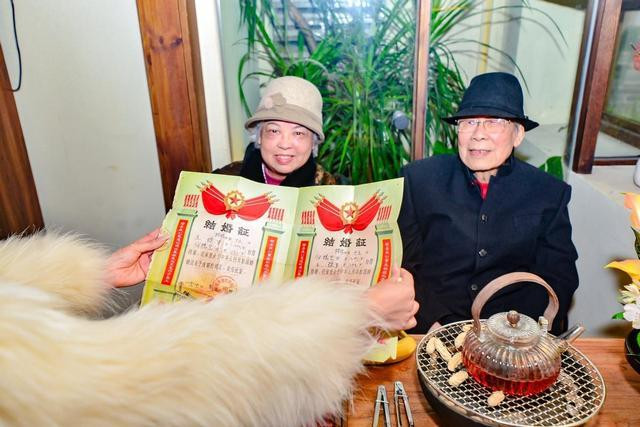 活动结束后,青年男女向金婚夫妇王琼、何穗生询问1970年结婚证的情况